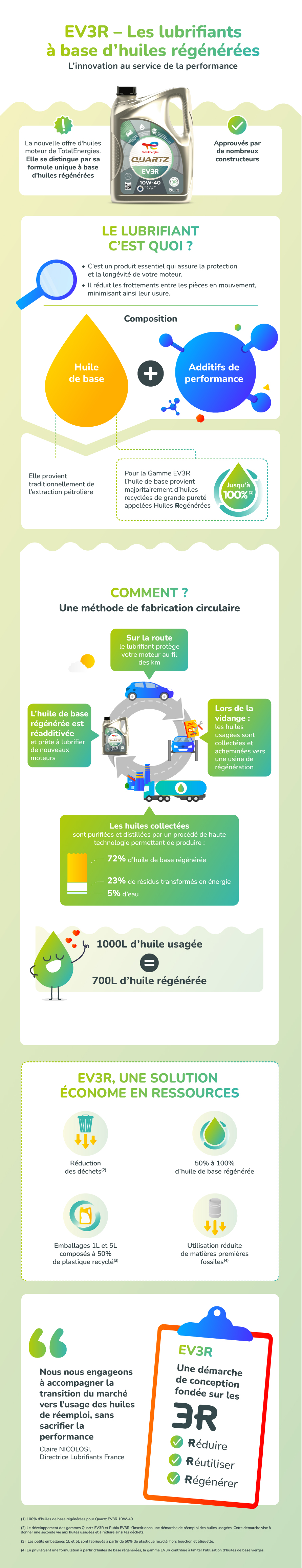 * Les huiles de bases de la gamme EV3R sont remplacés, selon les références, par 50% à 100% d’huile de base régénérée.